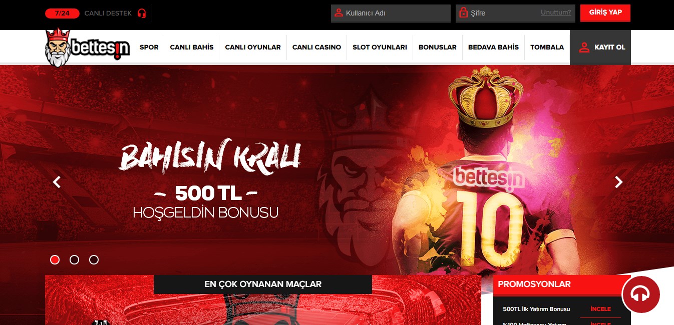 2016 yılının nisan ayında yayın hayatına başlayan Bettesin; lisanslı olduğunu söylediği hizmetleri, hızlı ve sorunsuz ara yüzüyle dikkat çekiyor. 18 yaş sınırını göz önünde bulundurarak ülkemiz bahis severlerini üye olarak kabul eden site, verdiği cazip bonus teklifleri ve diğer olumlu yönleriyle kısa sürede üye sayısında büyük artış yaşamıştır. Canlı destek ve diğer bağlantı şekilleriyle bağlanılan Bettesin operatörlerinin olumlu tavırları sitenin …